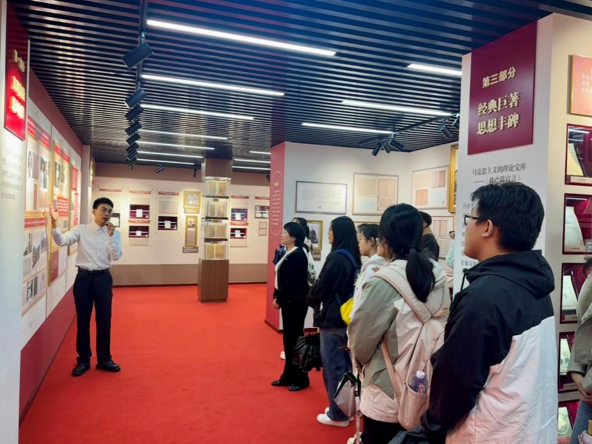 为深入了解马克思主义中国化时代化的光辉历程,10月20日下午,华中农业大学校青年研习社八期学员、校青马班六期学员,学员理论导师、马克思主义学院副教授黄运丽老师共同前往华中师范大学,开展“信仰之光——马克思主义文献典藏展”参观学习活动,同步走进华中师范大学校史馆、博物馆,在沉浸式学习中筑牢理想信念根基。
