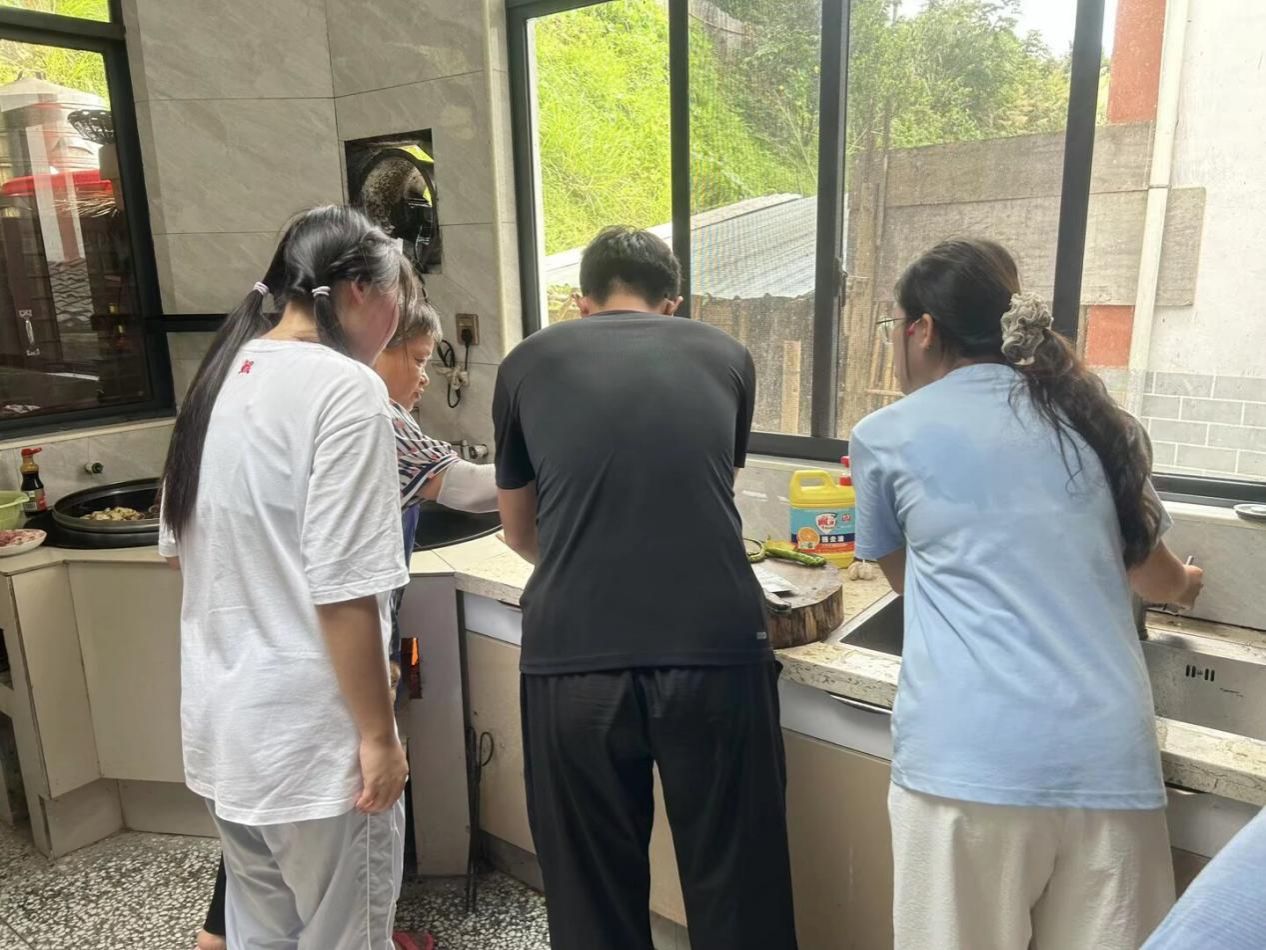 7月9日,队员们背负行囊踏入蜿蜒山径,开启“红军的一天”急行军体验:在荆棘丛生的小道上搜寻模拟哨点,在种类繁多的植物中辨别草药。到达坝上村后,队员们在老乡的指导下制作“红军餐”。大家分工协作,杂粮饭、野菜汤吃出军民协作、艰苦奋斗的味道。