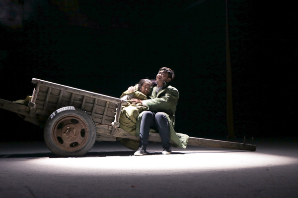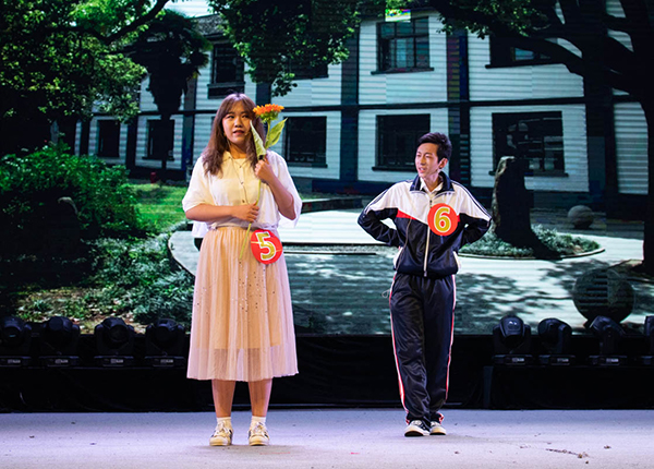 “么事!”带着浓浓陕北口音的方言使观众眼前一亮。接下来出场的是由7号选手带来的话剧《平凡的世界》。贺秀莲不幸患上了癌症,善良质朴的她不忍心将这一消息告诉丈夫孙少安。怀着对丈夫的深切情谊,秀莲主动邀请了丈夫的初恋情人田润叶到家中做客。纸终究包不住火,最终一切谎言在饭桌上被揭开。一时间少安崩溃的哭声,秀莲温柔的安慰与润叶郑重的发誓将戏剧推向高潮,全场静寂无声,观众们也被台上沉重的悲伤深深感染。场景切换,寒冷的深夜,少安与秀莲紧紧相拥。话剧的最后,少安奋力推动载着妻子秀莲的推车奔向远方,也奔向了希望。