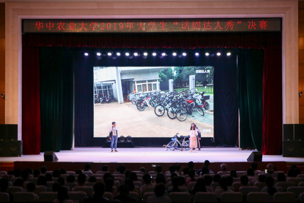 5月30日晚,我校2019年大学生“话剧达人秀”决赛在大学生活动中心剧场举行。本次大赛由我校校团委主办,牵挂剧社承办。省戏剧家协会会员,国家一级演员鲁有成,我校原创公益话剧《牵挂》第一代向幺妹扮演者、文法学院辅导员陈丽,武汉小嗨文化传媒有限公司总经理、戏剧制作人徐达,我校原创公益话剧《牵挂》第一代张福禹扮演者、动科动医院16级研究生孙潇等嘉宾到场担任评委,与观众共同观看这场精彩的角逐。
