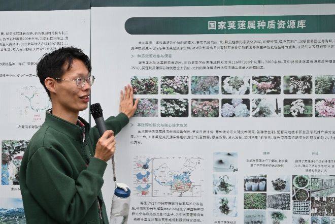 在猕猴桃资源与育种中心,李大卫老师为大家讲述了起源于湖北宜昌的猕猴桃的 “前世今生”。他向大家科普了猕猴桃的起源、丰富的营养价值以及种质资源,传递了作为一名科学家的责任与担当。小小的猕猴桃,在此刻成为了展现中国农业学者自信与力量的载体,让在场者深受触动。