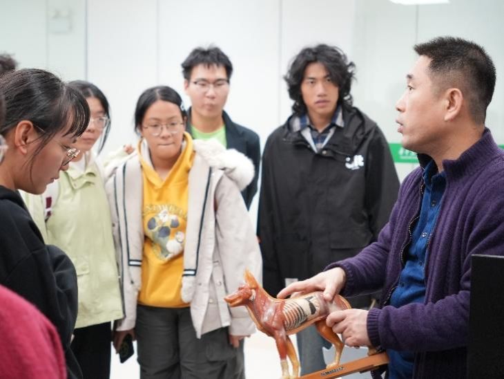 活动尾声,邱昌伟带领参会同学进行实地参观,让同学们近距离感受临床诊疗的真实场景,进一步深化对课堂理论知识的理解与认知。参观过程中,邱昌伟结合自身在兽医影像新技术领域的深耕经历,与同学们探讨了前沿技术从科研平台走向产业应用、最终普惠大众的实现路径。他强调:“我们的目标不仅是诊断一个个具体病例,更要通过持续的技术革新与专科建设,将更可靠、更先进的诊疗方案推广至更广泛的宠物诊疗市场,最终让每一位宠物主都能从中受益。”