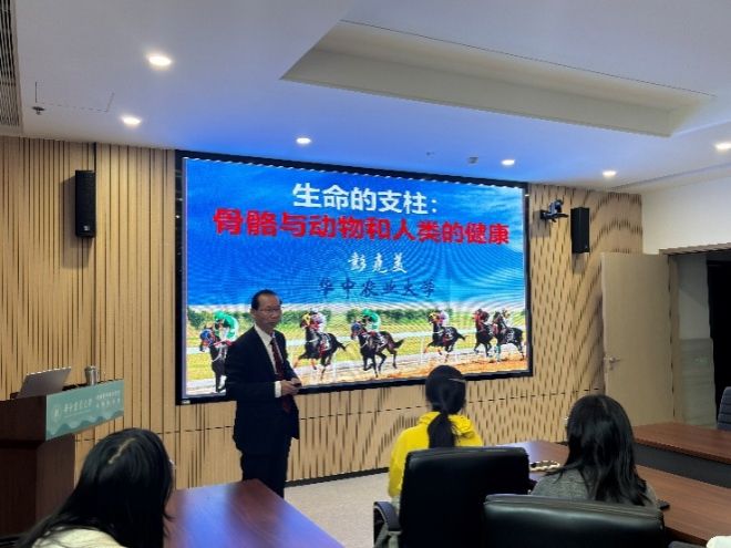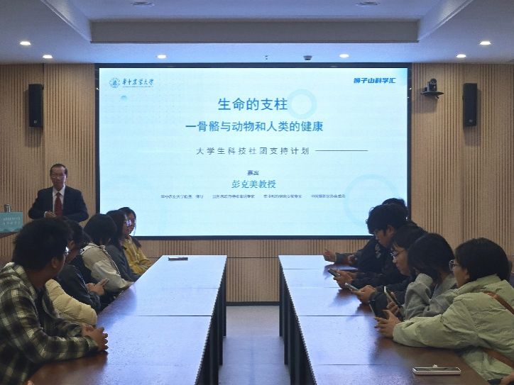 10月26日下午,由动物科技协会承办的“大学生科技社团支持计划”狮子山科学汇活动在第四综合楼D207会议室顺利举行。华中农业大学教授、博士生导师彭克美应邀开展“生命的支柱——骨骼与动物和人类的健康”主题讲座,与在场同学展开深入交流。