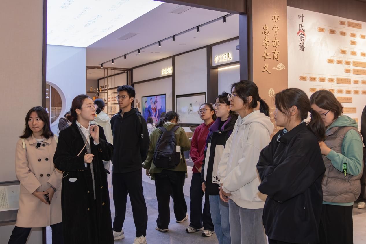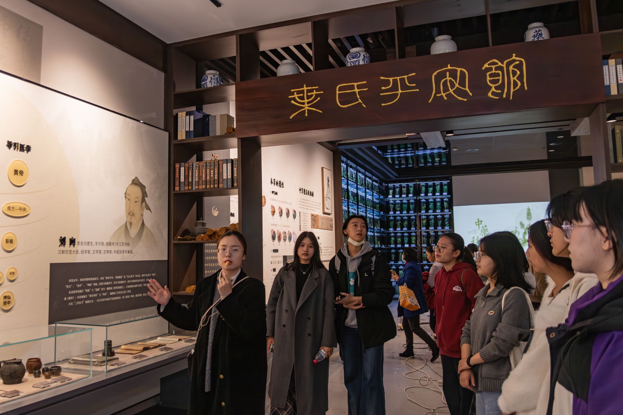 热身之后,同学们跟随熊恬秀的脚步来到叶开泰中医药文化博物馆。同学们首先了解了中医药行业的发展与内涵。自夏商周时期萌芽,至两汉时期《黄帝内经》结集,中医药逐渐形成基本体系。“大家熟悉的‘望闻问切’是中医诊疗法的重要组成部分。除此之外,‘天人合一’‘辨证论治’等也是中医的重要原则。”在熊恬秀的解说中,同学们对中医的认知得到拓展。