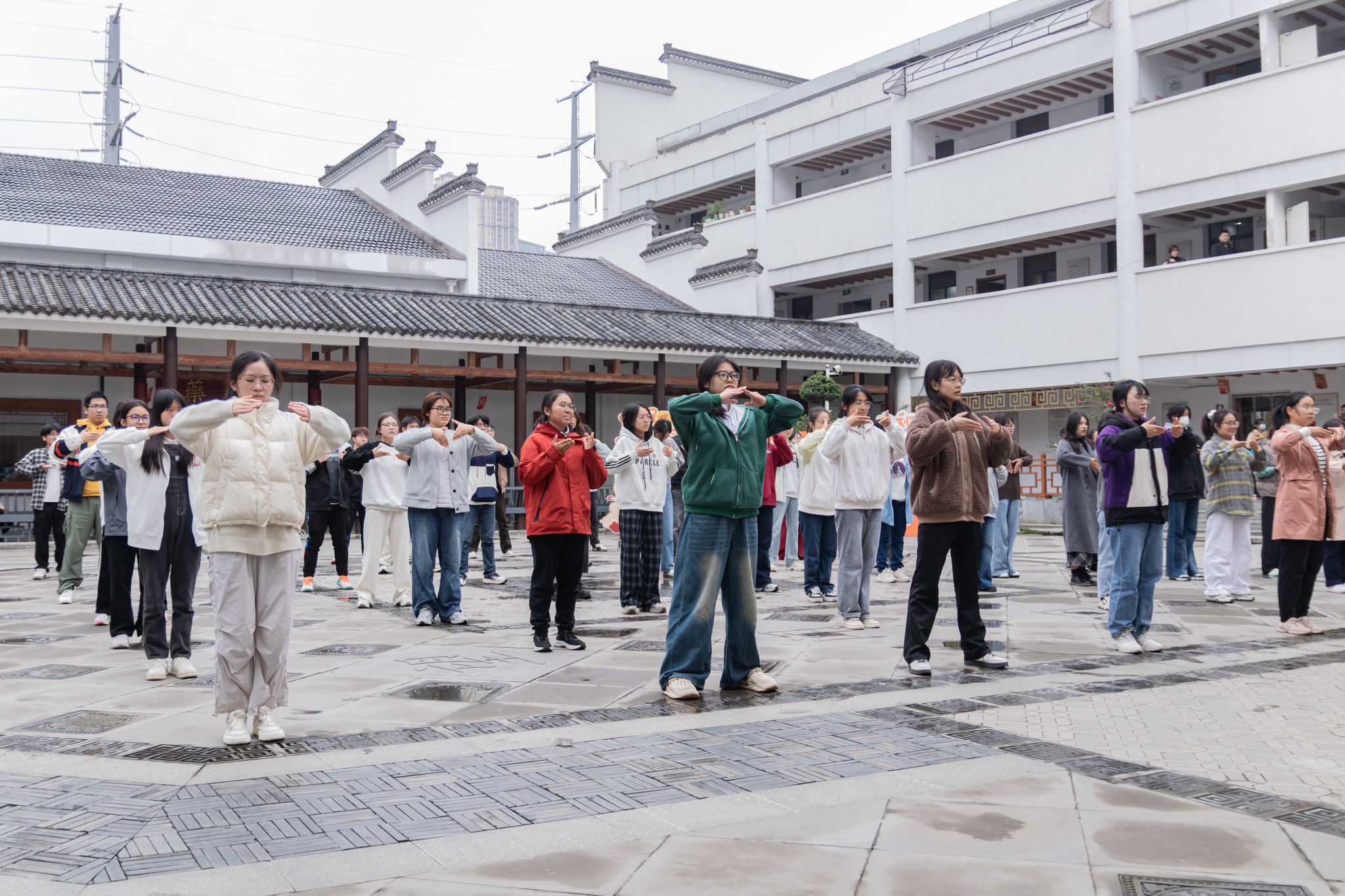 步入叶开泰国医堂院内,同学们在讲解员熊恬秀的带领下体验了20分钟的八段锦。大家依照讲解完成八组缓慢流畅的动作,涵盖舒展、伸张、旋转、按摩等形态。据讲解员介绍,八段锦被称为“中医版瑜伽”,能调理身体、疏通经络、平衡气血,对年轻人有很大益处。