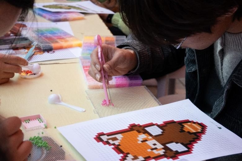 动物科技协会的“巧手拼豆”工作坊现场气氛尤为热烈。五彩的拼豆在同学们手中逐渐组合成形,幻化为一只只栩栩如生的动物形象。这种兼具动手乐趣与治愈体验的活动形式,吸引了众多同学参与互动。协会负责人、动医2303班王思仪同学表示:“我们希望通过这样轻松有趣的方式,引导大家走近动物、了解动物、喜爱动物。”